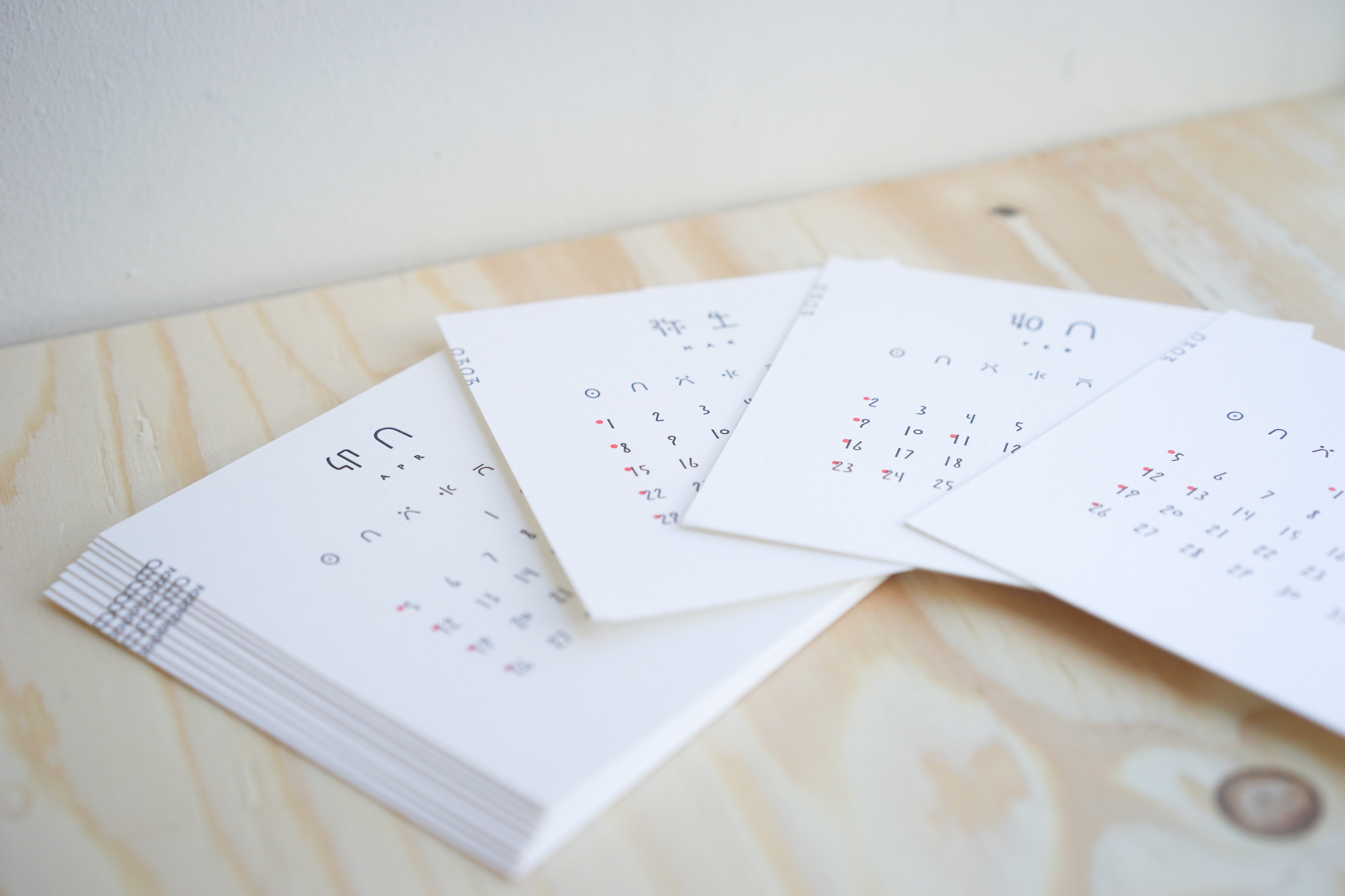 印刷にもこだわり、卓上には活版印刷を、壁掛けにはシルクスクリーンを使用し、手で触れたくなる暖かさを目指した。