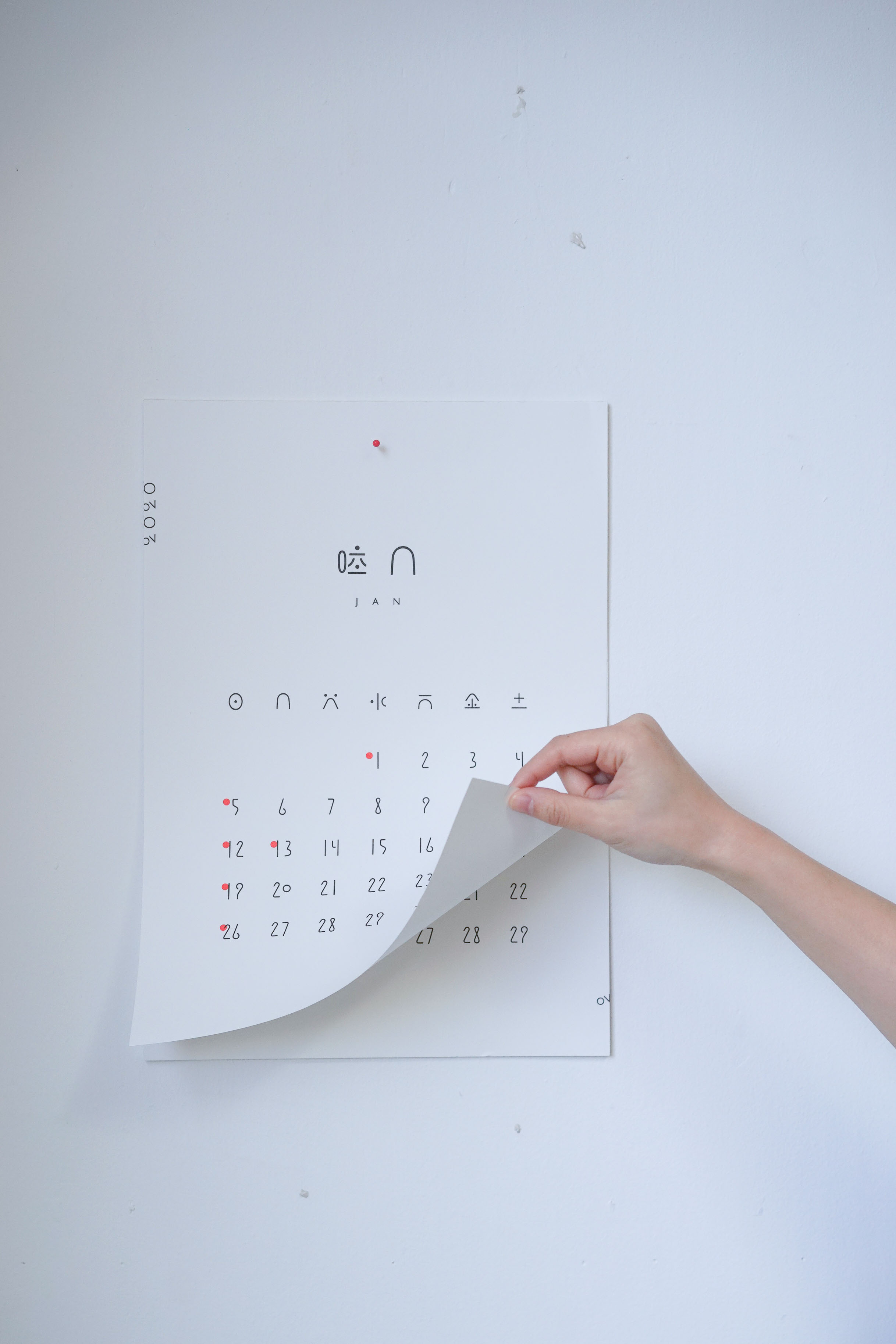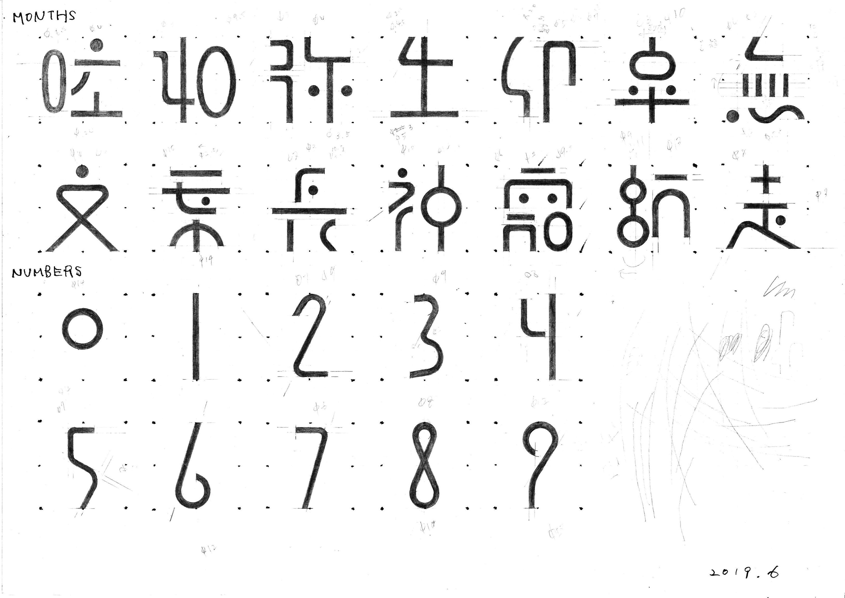漢字と月の数字に使ったタイポグラフィは、要素を極限まで少なく単純化し、かつギリギリの可読性を保った形を探った。
