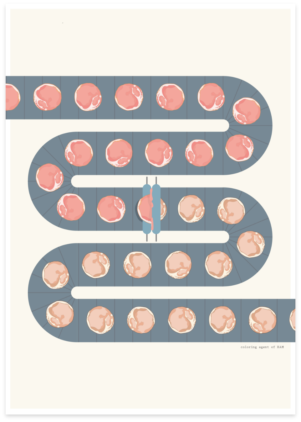発色剤を使って、ハムを食欲をそそられる色にしている。