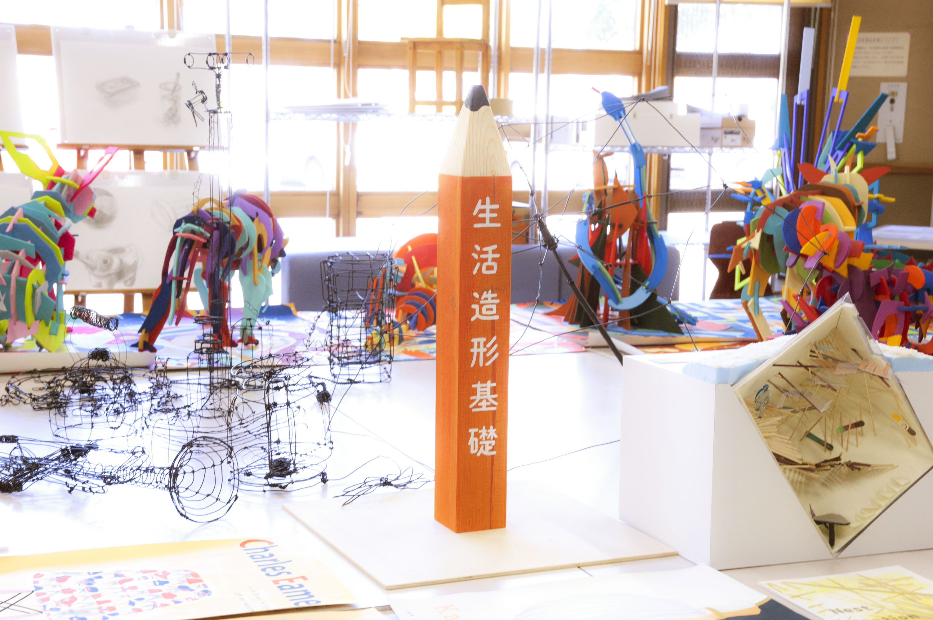道具・住居・服飾・マーケティングの領域のある学科では、それぞれ様々なえんぴつを使うことからモチーフに選んだ。