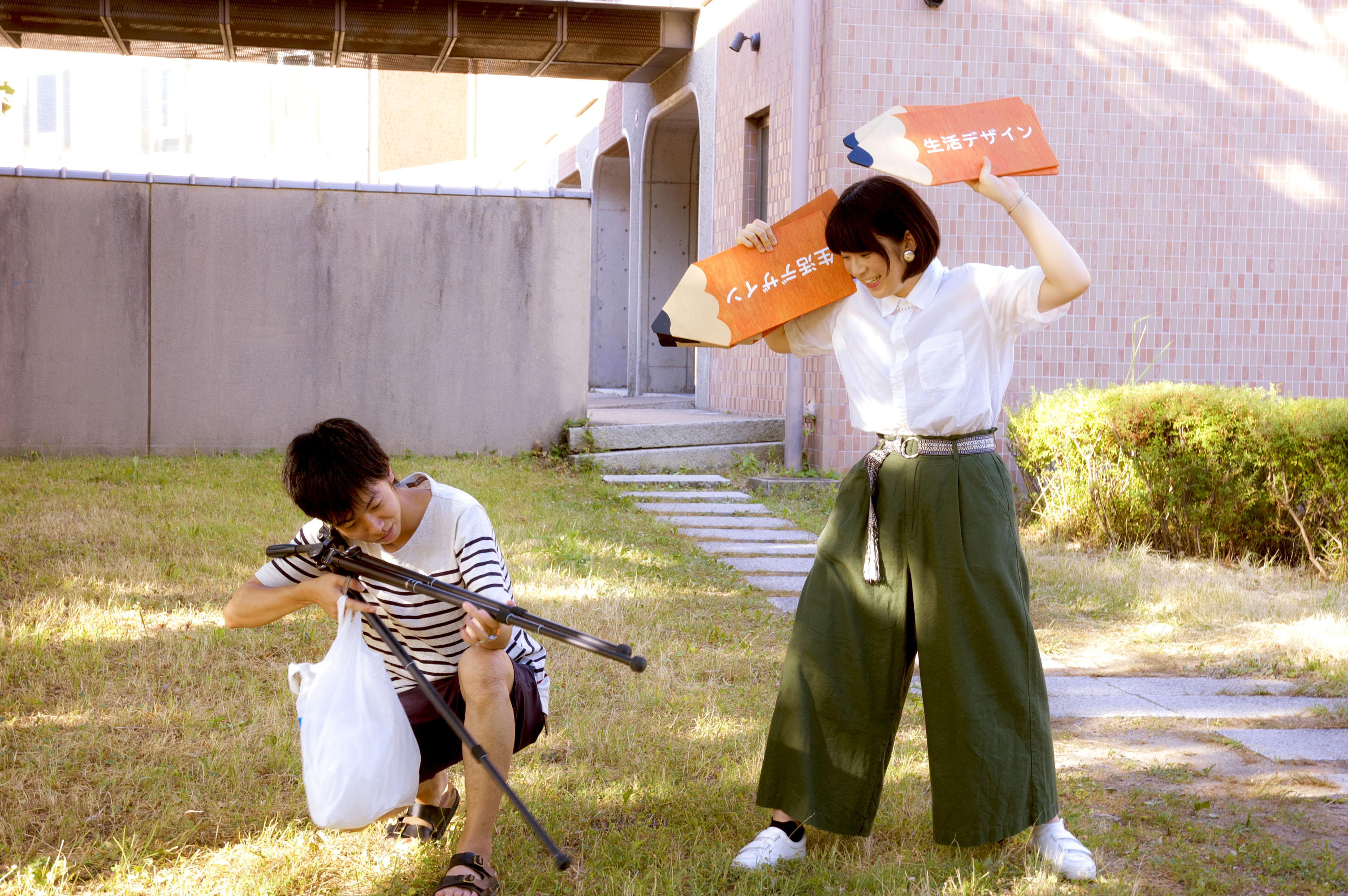 在学中、滋賀県立大学生活デザイン学科のオープンキャンパスのためのサインをデザインさせてもらった。