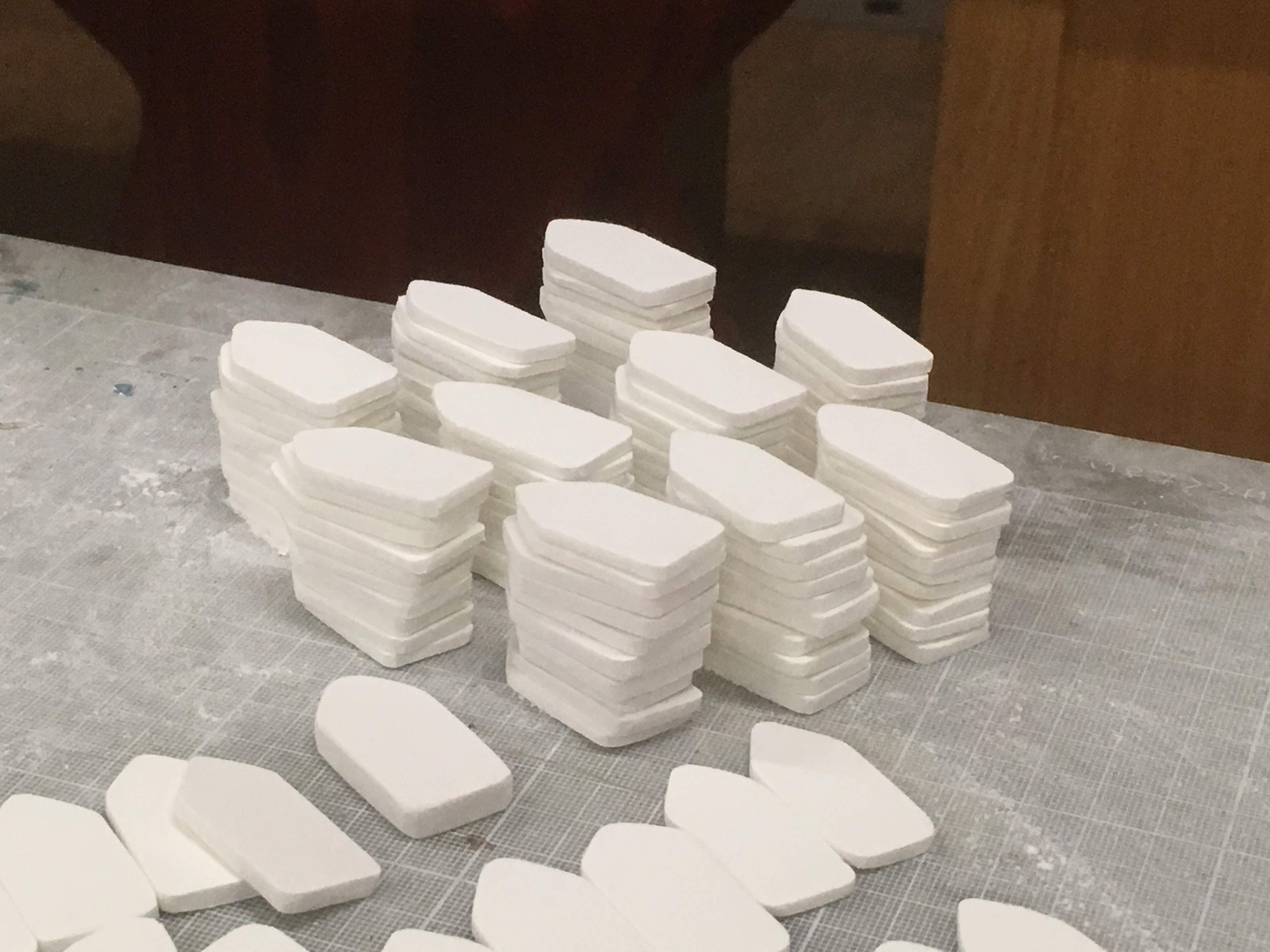 石塑粘土でひとつひとつ手作りしたが、これが想像以上に大変な作業だった。