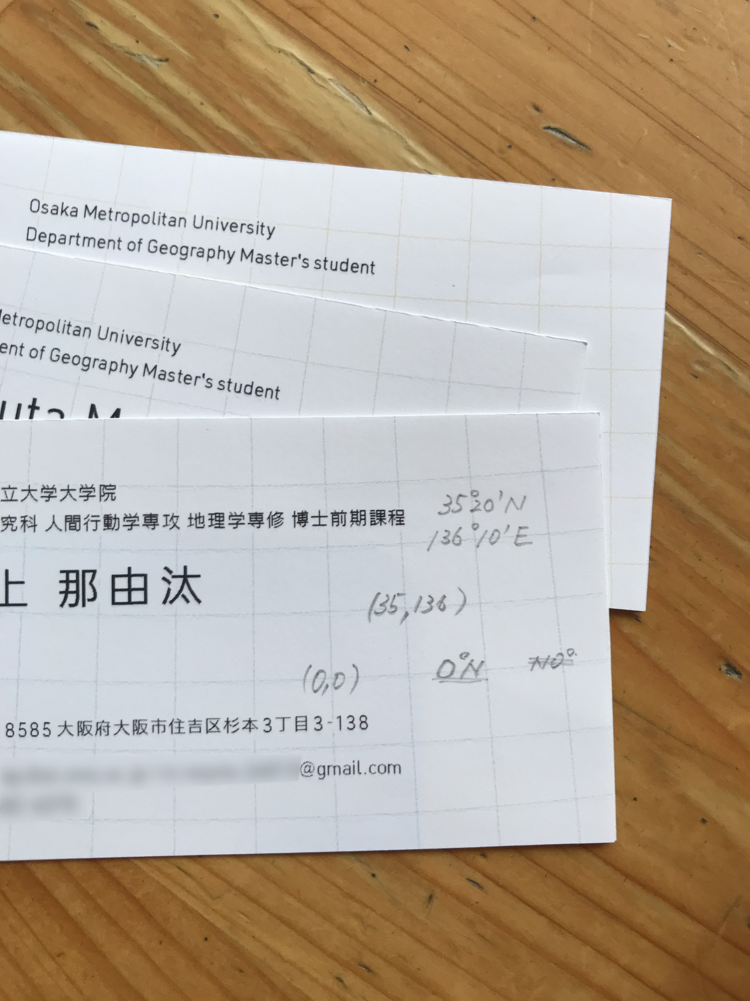 そんな大学院での現地調査や学会、知り合いに「今何をしているのか伝えるツール」として、名刺を作りたいとの相談を受け、制作が始まった。